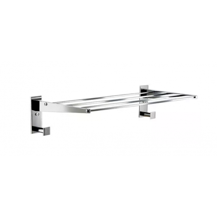 Un complemento para el cuarto de baño perfecto para almacenar las toallas limpias. Un toallero repisa con perchas. Disponible en cromo. Para baños con un diseño contemporáneo, minimalista, con un diseño moderno.