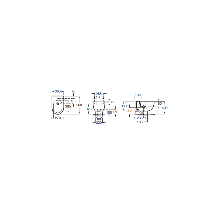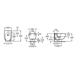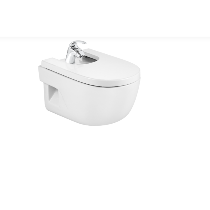 Bidé suspendido y tapa con bisagras de acero inoxidable.