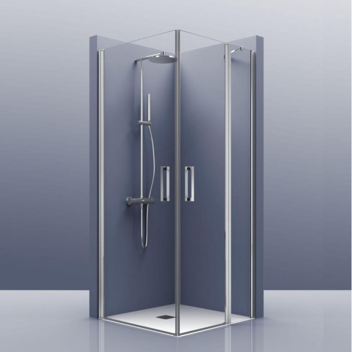 Mampara angular de 1 fijo y 2 puertas abatibles 180º