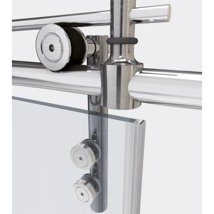 Un estilo de mampara basado en la estética que brinda el rodamiento visto. El diseño del herraje ha sido concebido para apreciar la belleza del vidrio desde cualquier ángulo, evocando un conjunto con cierto estilo colonial, pero con la calidez y modernidad que otorga el Acero inoxidable.