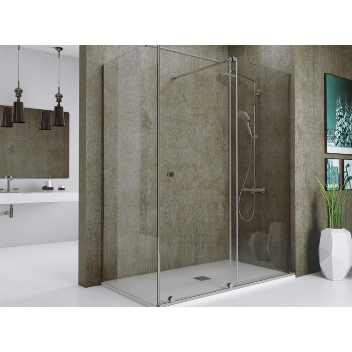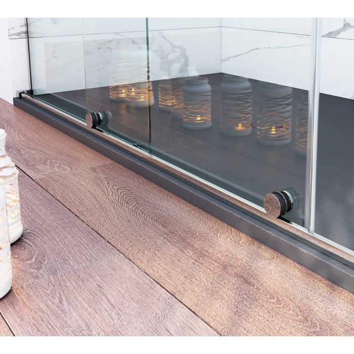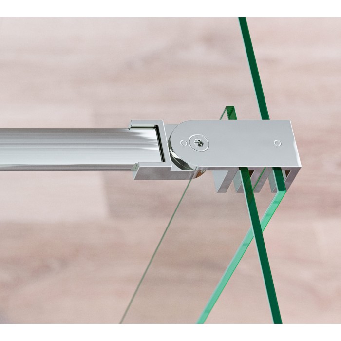 -Mampara de ducha angular transparente, con guía y rodamientos en la parte inferior en acero inoxidable.