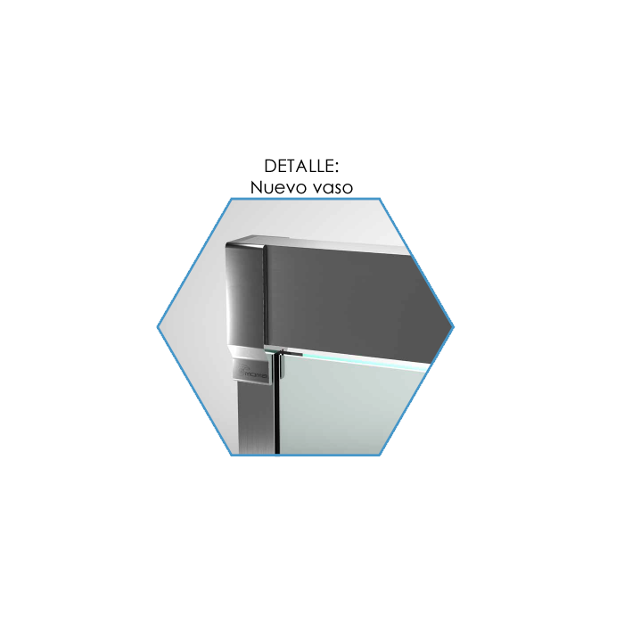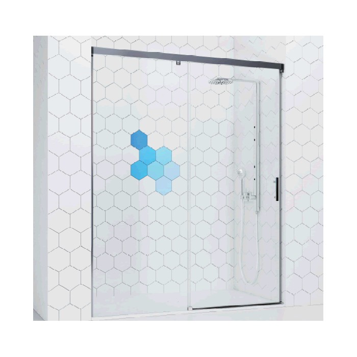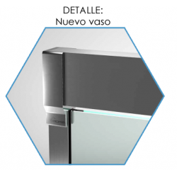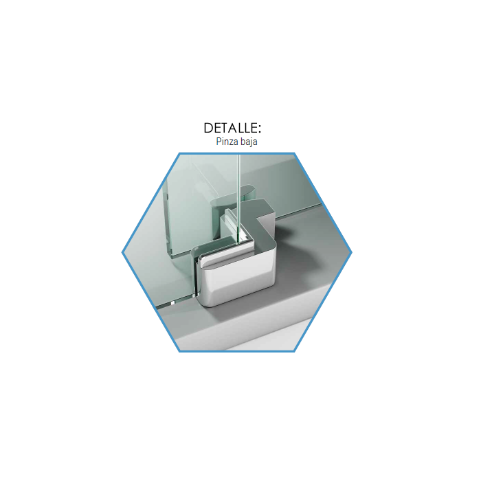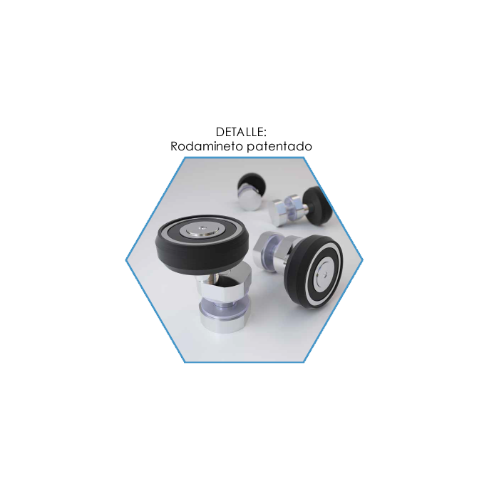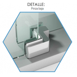 Mampara frontal corredera con perfilería de alto brillo y rodamientos arriba.