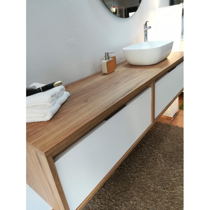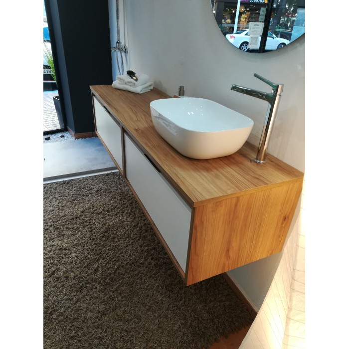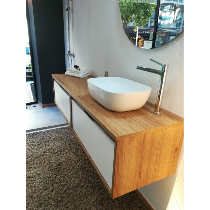 Mueble de baño de 160cm suspendido de 2 cajones espaciosos con encimera y lavabo de sobreponer